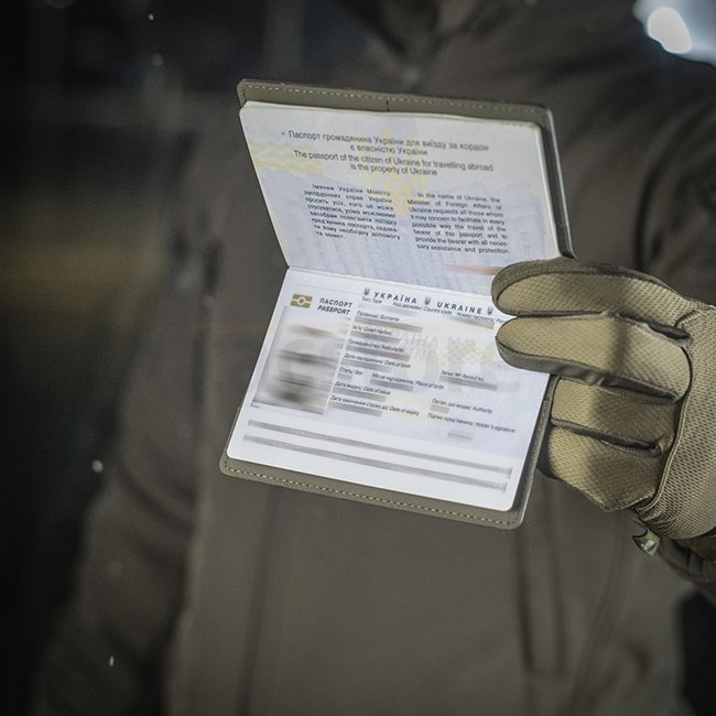Made of a modern polymer composite, which has exceptional abrasion resistance, strength, and durability. The front cover has a vertical "Passport" lettering. There are inner compartments for plastic cards.