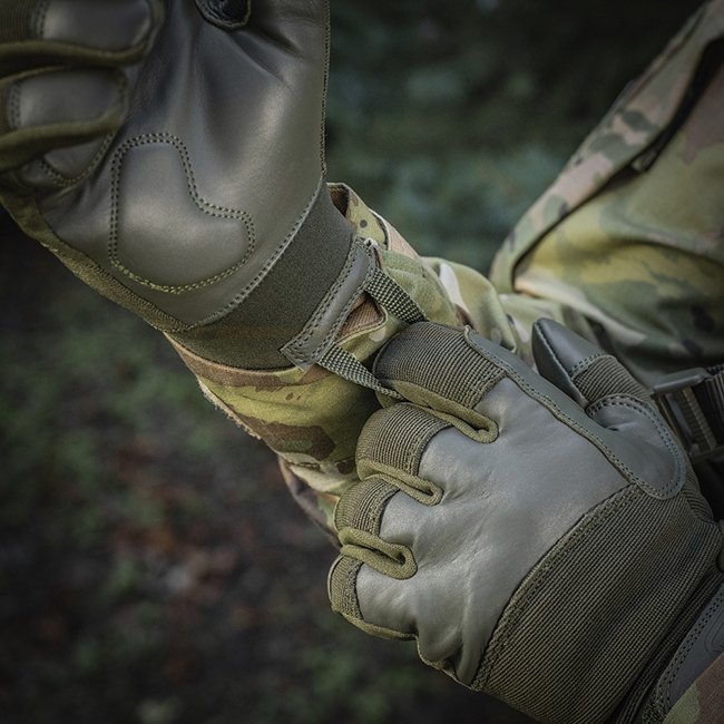 M-Tac Police Gloves Gen.II - Olive - M: Police-designed gloves made for comfort and durability with synthetic/leather material, padded active zones, and adjustable Velcro cuff closures. Polyester/Leather palm material.