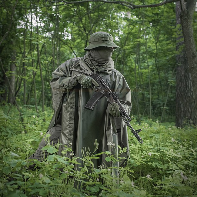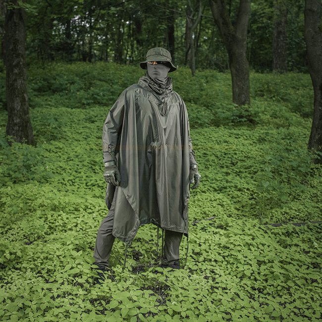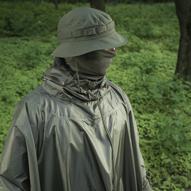 Stay dry and protected with the M-Tac Poncho in Olive color, a versatile outerwear that doubles as a temporary shelter or tent. Made from 100% polyamide, measuring 210 x 145 cm.