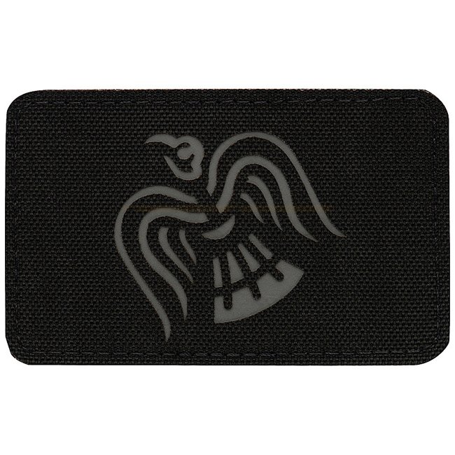M-Tac Raven Banner Laser Cut Patch in Black/Grey color. Made with Cordura 500D Nylon on the front and Hook surface on the back. 80 x 50 mm dimensions.