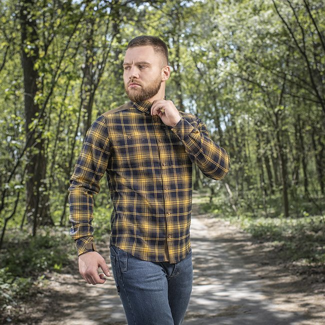 The M-Tac Redneck Shirt in Navy Blue/Yellow is a versatile tactical plaid shirt suitable for any occasion. Reinforced shoulders, classic look, and adjustable cuffs make it a must-have item in your wardrobe.