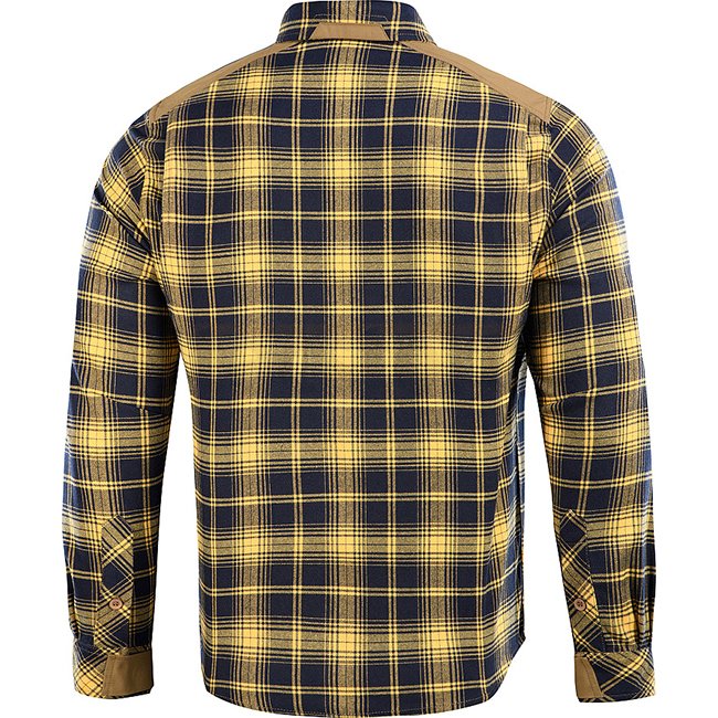 M-Tac Redneck Shirt - Navy Blue / Yellow - XL - Regular: Versatile tactical plaid shirt perfect for work and city life. Windproof and moisture-proof shoulder reinforcements. Classic look, Velcro straps on sleeves for adjustable cuffs. Must-have for busine