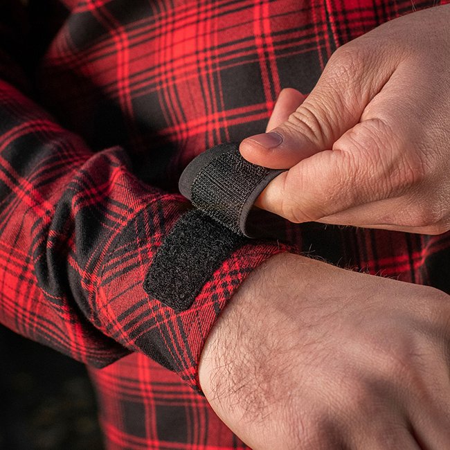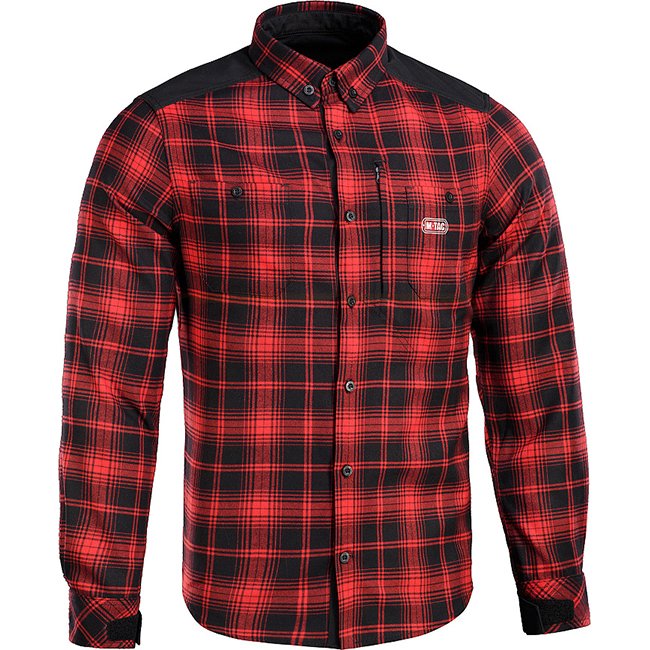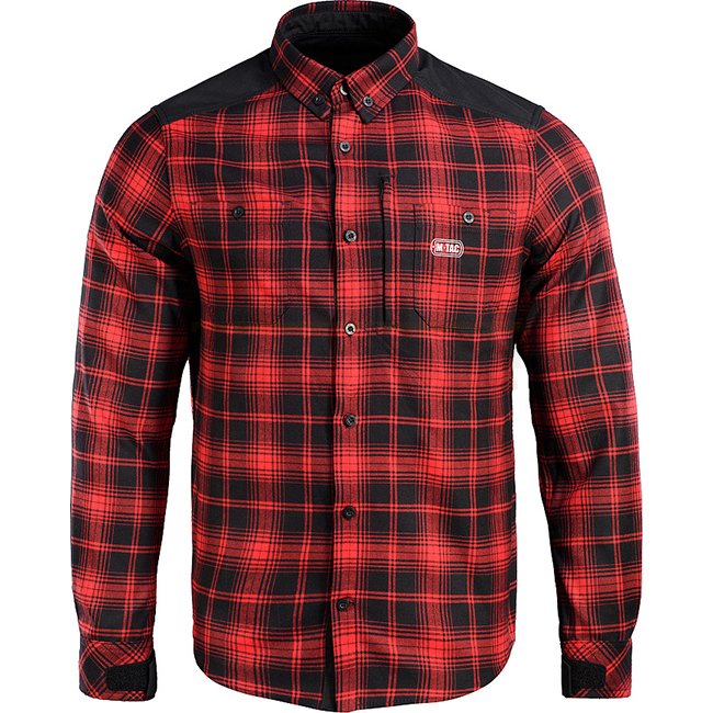 M-Tac Redneck Shirt in red and black is a versatile tactical plaid shirt suitable for any situation. Made in the US with wind and moisture-proof shoulder reinforcements. Classic look with adjustable Velcro cuffs.