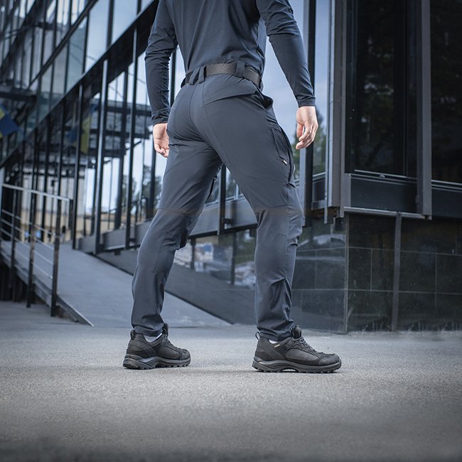 Comfortable and practical M-Tac Rubicon Flex Pants in Dark Navy Blue. Sewn from ultramodern 4-Way Stretch fabric for active use. Resistant to fading, moisture-repellent, and with lots of pockets. Perfect for tactical or casual wear in warm to hot seasons.