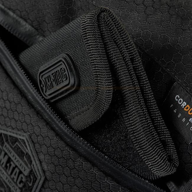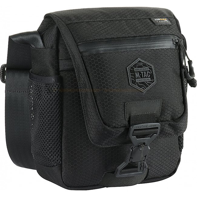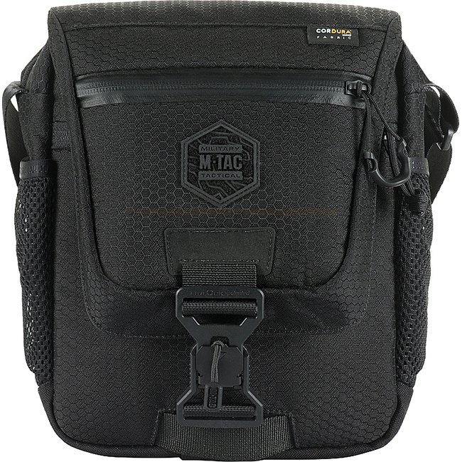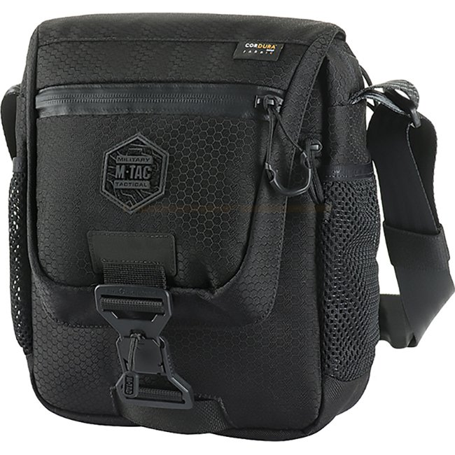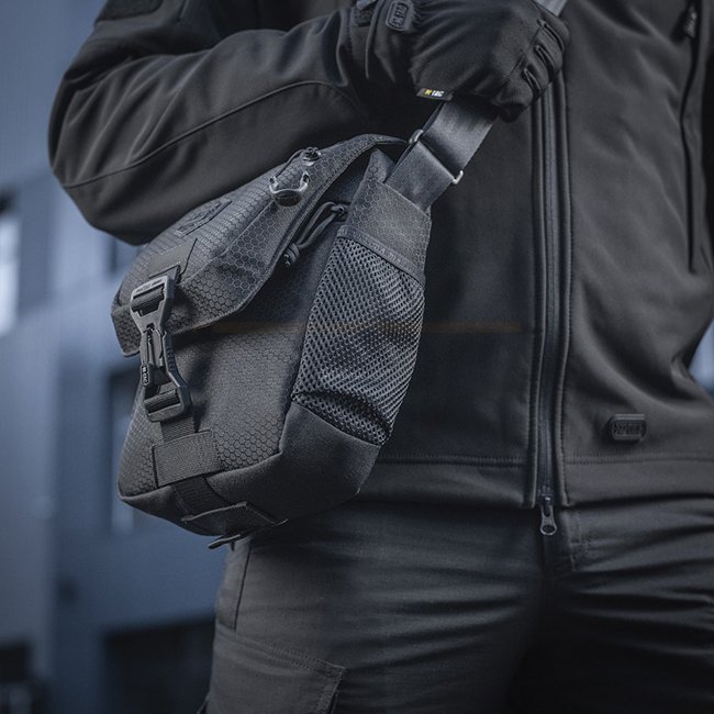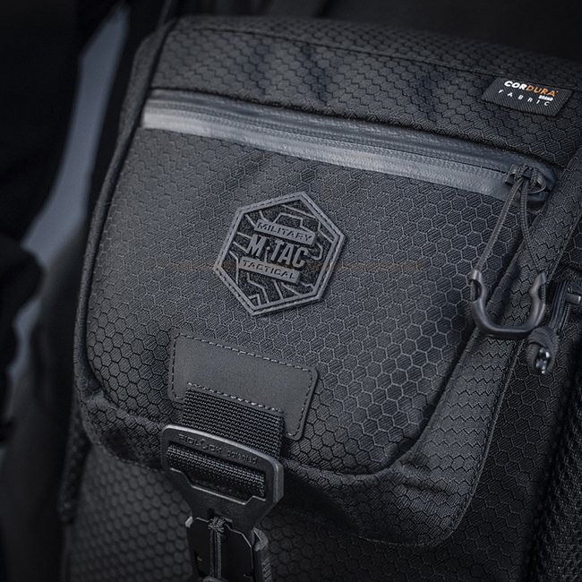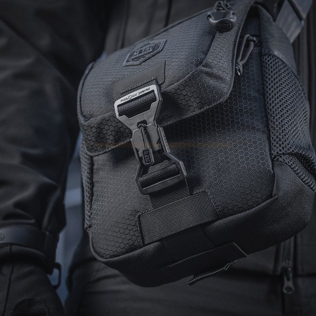 M-Tac Satellite Magnet Bag Elite Hex Gen.II - Black: Multifunctional organizer bag with Hex Polyester and Cordura 1000D material. YKK & Woojin hardware, magnetic Fidlock closure, adjustable nylon sling strap, concealed carry compartment, and clever pocket