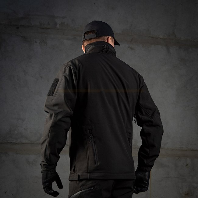 The Soft Shell Jacket is made of an interlayer polyurethane membrane that protects from bad weather. Inside, it has a thin fleece layer. It has two identification panels, which, depending on the situation, can be pulled out or remain hidden. The empty panels can be printed or emproided. A side opening system allows quick access to a side arm.