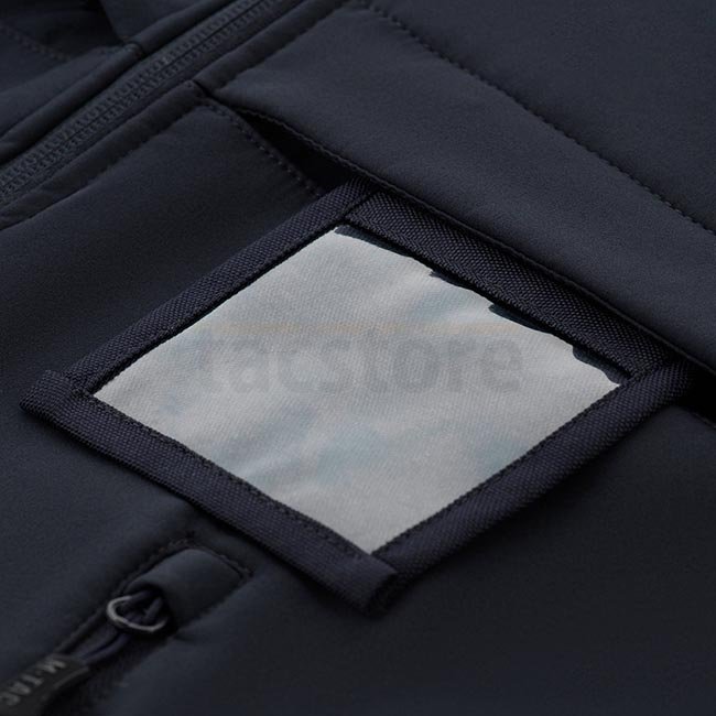 The Soft Shell Jacket is made of an interlayer polyurethane membrane that protects from bad weather. Inside, it has a thin fleece layer. It has two identification panels, which, depending on the situation, can be pulled out or remain hidden. The empty panels can be printed or emproided. A side opening system allows quick access to a side arm.