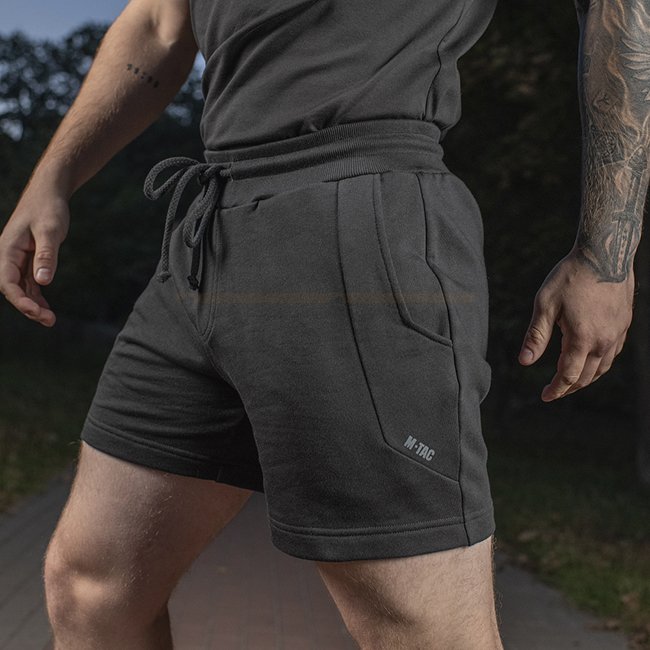 M-Tac Sport Fit Cotton Shorts - Black - XL: Comfortable cotton shorts perfect for sports and daily wear during the hot season. Made from 100% cotton fabric that doesn't sweat. Features elastic band, side pockets, and stylish logo.