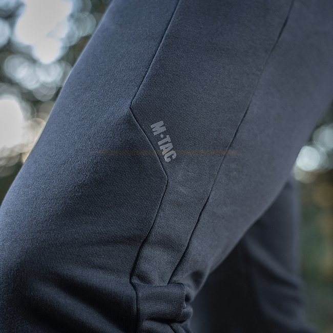 M-Tac Stealth Cotton Pants in Dark Navy Blue, XS Regular. 100% cotton ensures comfort during physical activities. Smart cut for movement freedom. Elastic band for secure fit. Stylish and practical when paired with the Cotton Hoodie.