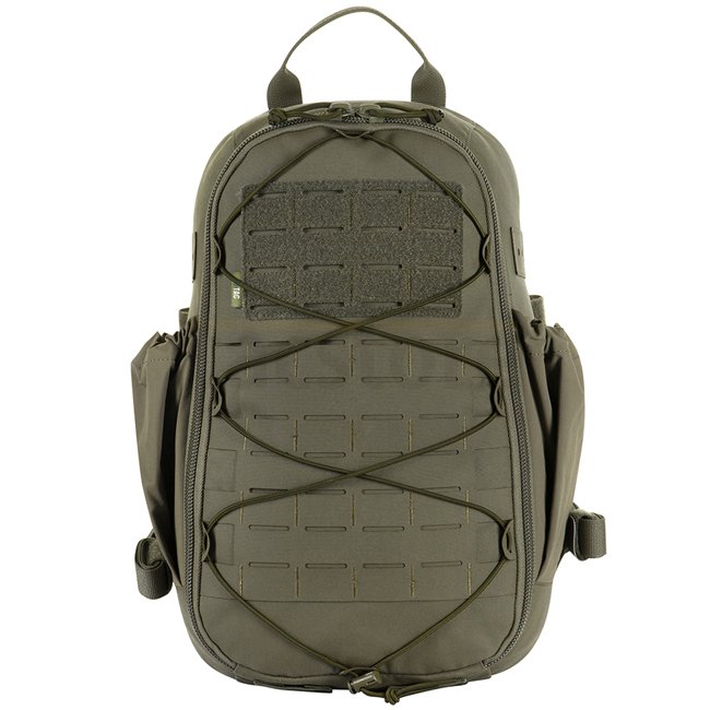 M-Tac STURM Elite Backpack in Ranger Green - perfect for short self-sufficient field stay. Cordura 500D material provides superior protection and durability. Main compartment opens like a suitcase, side pockets for water bottle, MOLLE system for extra att