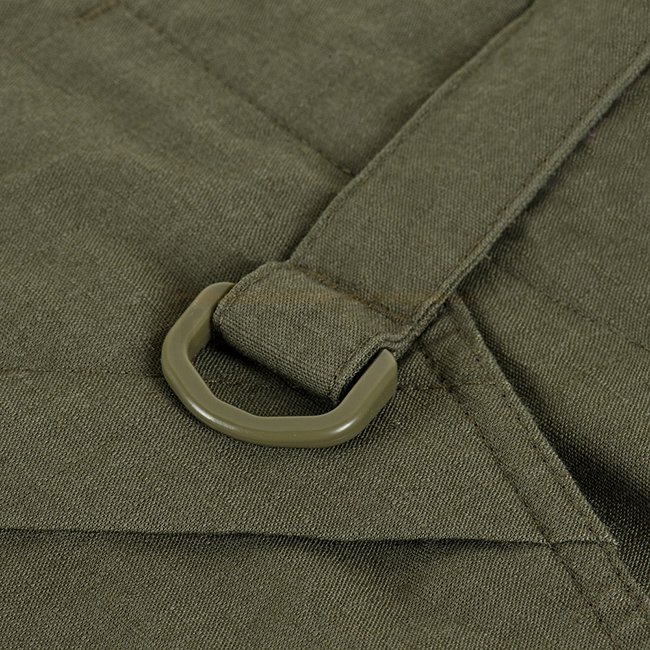 The belt of the pants is adjustable using webbing straps, and they're designed to be worn with a belt up to 5.5 cm wide. There are two D-rings at the front for attaching various gear. The width of the knee area is adjustable with the help of velcro. An elastic cord is stretched along the lower edge of the pants and Velcro closures allow size adjustment.