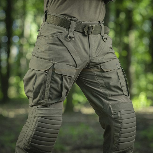 Thanks to the well-thought-out cut, the pants do not restrict freedom of movement. They are comfortable to jump, run, bend, squat and move over rough terrain. Many thoughtful pockets allow you to carry essential items. A design aspect of this model are the large double pockets that do not visually affect the silhouette. Trouser pockets have Fastex closures for knee height adjustment.