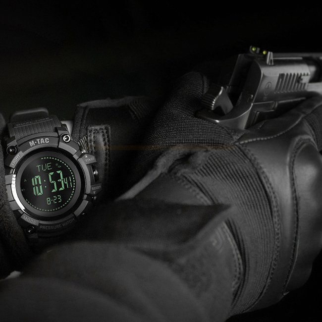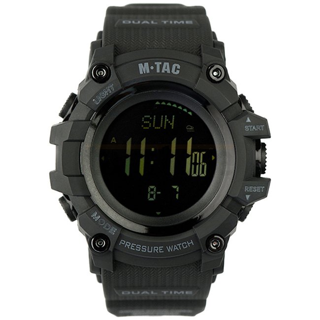 M-Tac Tactical Adventure Watch - Black: A multifunctional watch perfect for hiking, military use, extreme sports, and everyday life. Shows air pressure, temperature, and more.