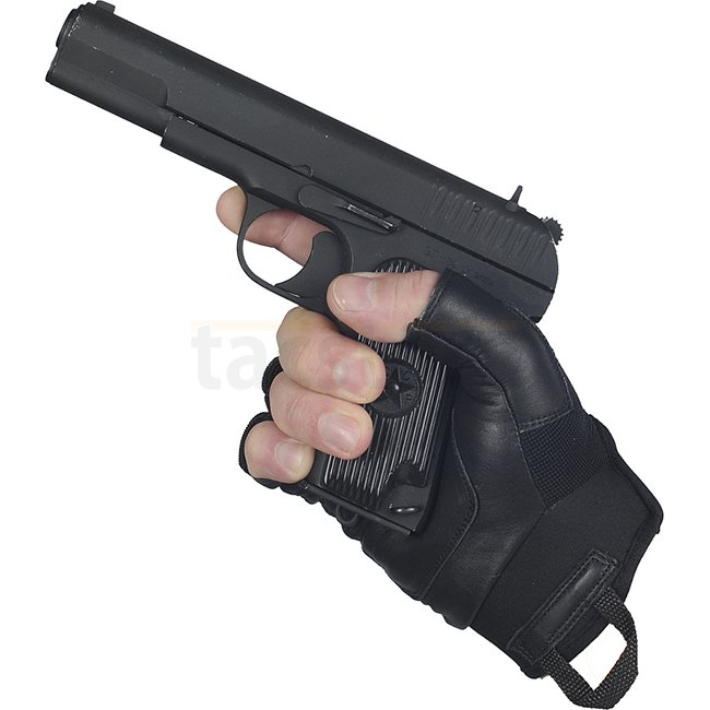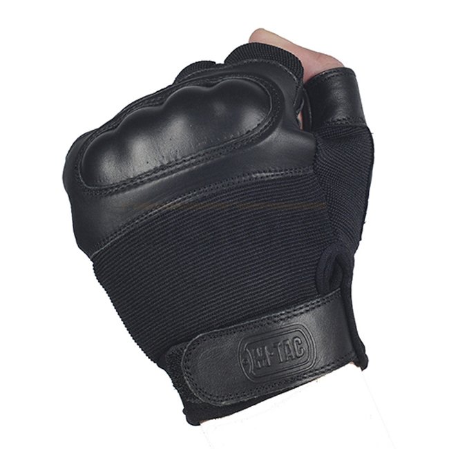 M-Tac Tactical Assault Gloves Fingerless Mk.4 - Black - 2XL: designed for weapon handling with genuine leather palm pad for protection, knuckle padding, and Velcro cuff closure.