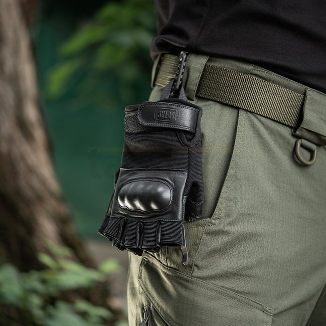 M-Tac Tactical Assault Gloves Fingerless Mk.4 in Black made for weapon handling. Reinforced palm pad to prevent injuries and bruises. Knuckle cushioning pads. Velcro fastener. Polyester/leather material.