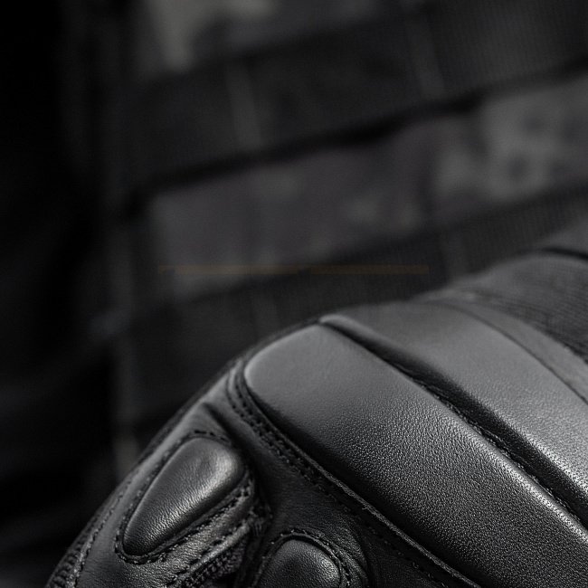 M-Tac Tactical Assault Gloves Mk.2 - Black - L are designed for weapon handling and feature a reinforced palm pad for injury prevention. Knuckle cushioning pads and Velcro cuff closure provide added protection. Polyester and genuine leather construction.