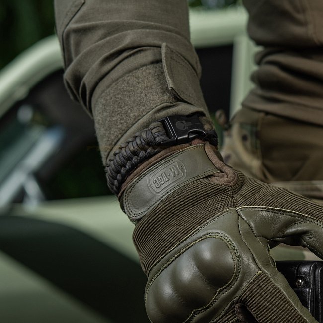 M-Tac Tactical Assault Gloves Mk.4 in olive, designed for handling weapons with reinforced palm pad made of genuine leather.