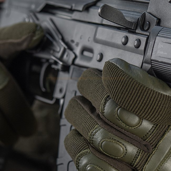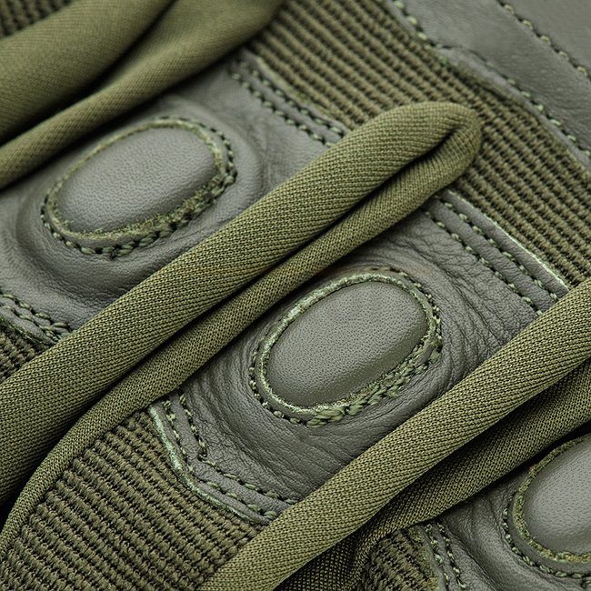 M-Tac Tactical Assault Gloves Mk.4 - Olive - XL are designed for weapon handling with reinforced genuine leather palm pad to prevent injuries and slipping. Features cushioning pads over knuckles and Velcro fastener cuff. Material: Polyester/Leather.
