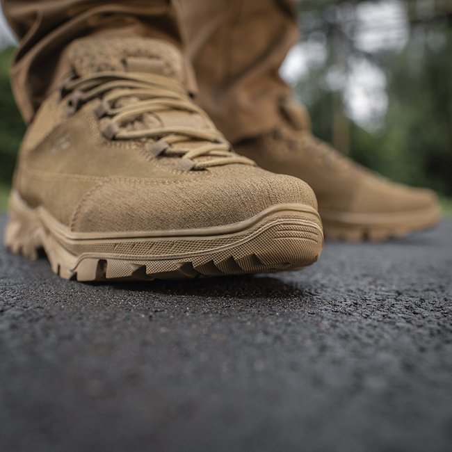 M-Tac Tactical Sneakers Patrol R Vent in Coyote color, size 46. Quality, affordable tactical boots made of genuine leather and synthetic materials. Reinforced toe area, shock-absorbing polyurethane sole, and abrasion-resistant rubber sole for enhanced gri