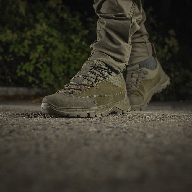 M-Tac Tactical Sneakers Patrol R Vent - Olive - 46. High-quality affordable tactical boots combining genuine leather and synthetic materials for durability. Reinforced toe area with rubber-coated leather lining. Polyurethane upper sole with shock-absorbin