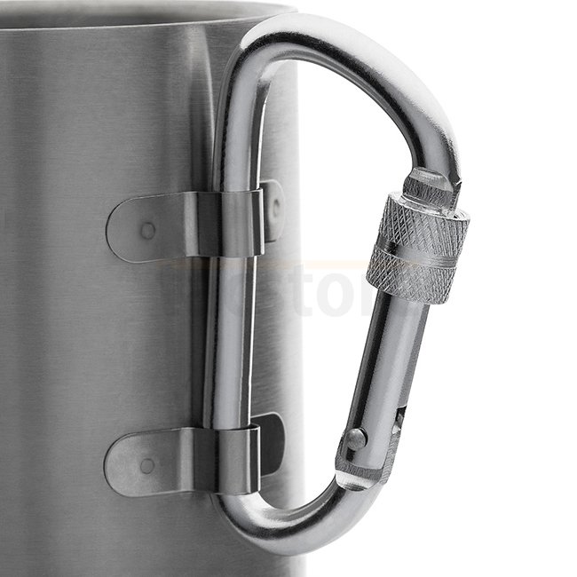The Thermo Mug Carabiner Handle is made of stainless steel and has a rigid and strong structure. Two-layer walls do not allow the drink to cool and heat the outer walls. A carbine was used instead of a handle to attach the mug to your equipment when not in use.