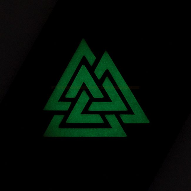 M-Tac Valknut Laser Cut Patch - Glow in the Dark. Front: Cordura 500D Nylon, Back: Hook surface, 80 x 50 mm. A unique patch that glows in the dark.