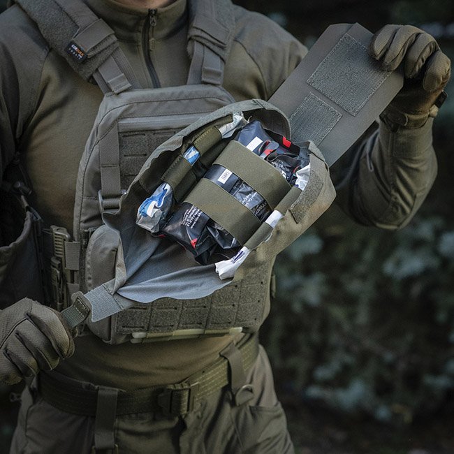 The outer pouch is made of Cordura 500D - a durable material that is resistant to abrasion and high loads. The inner side walls are elasticated nylon, thanks to which it keeps its shape. An additional fixing element is a strap that allows you to securely hold the first-aid kit, even during activity. Attaches to equipment using the MOLLE interface.