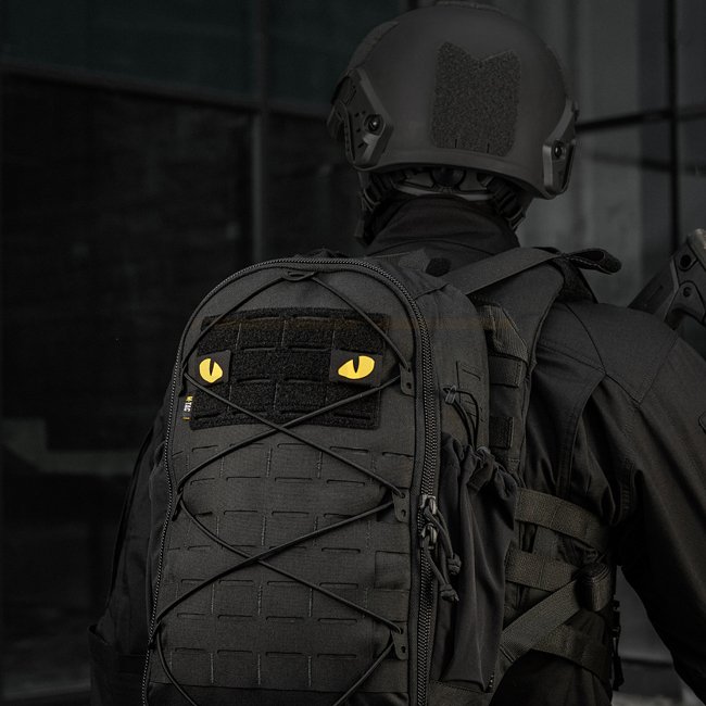 M-Tac Yellow Tiger Eyes Laser Cut Patch - Black, made of Cordura 500D with Hook surface, 40 x 25 mm dimensions