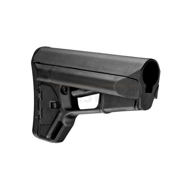 The patented Magpul ACS (Adaptable Carbine/Storage) Mil-Spec Model is a drop-in replacement buttstock for AR15/M16 carbines using Mil-Spec sized receiver extension tubes. A streamlined, anti-snag profile shields the release latch to prevent accidental activation. Similar to the Magpul CTR, the ACS also features a supplemental friction lock system that minimizes excessive stock movement for enhanced weapon stability and accuracy. Dual, rear accessible, water-resistant battery storage tubes and an integral storage compartment in the butt of the stock provides multiple storage options. The ACS comes standard with a 0.30 inch thick rubber butt-pad which provides positive shoulder purchase to prevent slippage even with body armor or modular gear.