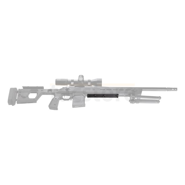 Magpul M-LOK Dovetail Adapter 4 Slot for RRS/ARCA Interface - Black, made of steel, dimensions 198 x 5 x 38.1mm, weight 79g.