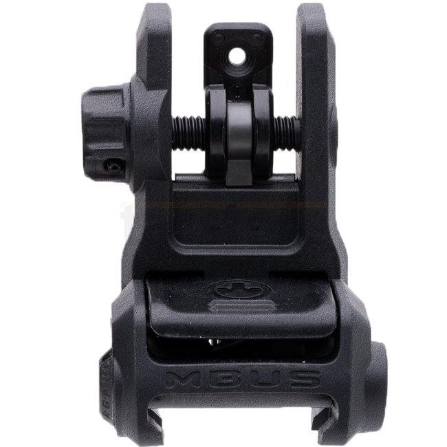 MBUS 3 Rear Sight by Magpul is a compact spring‑loaded flip‑up iron sight made from impact‑resistant polymer. When stowed it stands only approx. 14 mm high and approx. 35 mm wide. Deployed, it provides standard AR sight height and features ambidextrous push‑button deployment and a rapid‑select dual‑aperture windage adjustment system. Weighs just 30 g including mounting hardware.