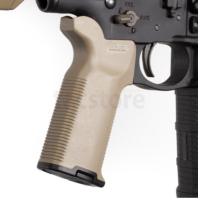 MOE K2+ Grip by Magpul combines a reinforced polymer body with wrap‑around rubber overmolding for secure weapon control. It offers a steeper grip angle (approx. 17°), a beavertail backstrap for improved trigger finger placement, a hard bottom edge to minimize snags, and compatibility with optional storage cores. Drop‑in upgrade for AR15, M4, AR10, M16, M110 and SR25 platforms.