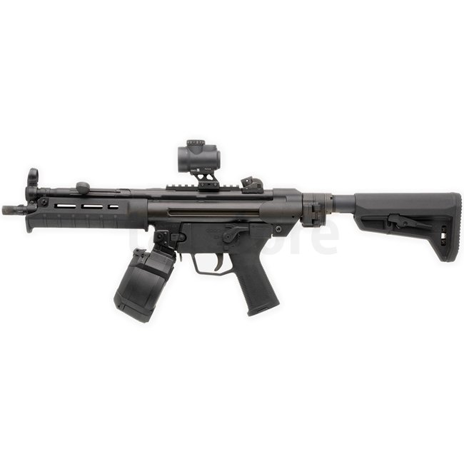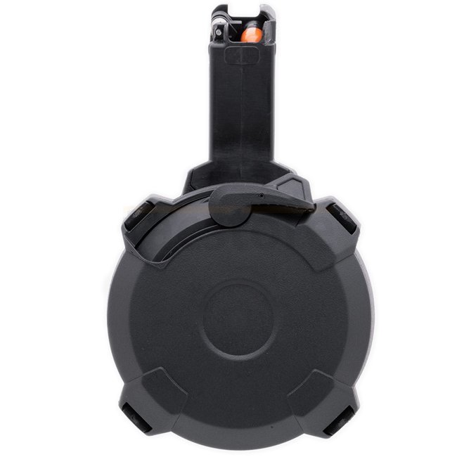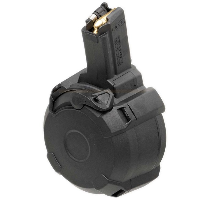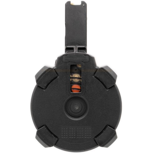 The Magpul PMAG D-50 MP is a durable and reliable 50-round drum magazine designed for 9mm HK94/MP5 large-format pistols and pistol caliber carbines. Its lightweight polymer construction and compact design make it ideal for various shooting applications.