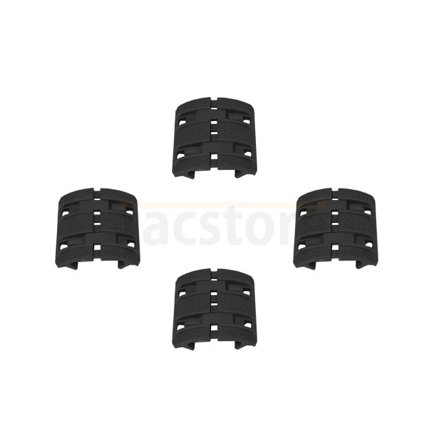 The XTM Enhanced Rail Panels are low-profile, two-piece covers that attach anywhere on a 1913 Picatinny rail without having to remove previously mounted accessories. The Enhanced XTM Panels feature an aggressive anti-slip texture and dual-side routing clips for retention of light/laser cables. The design and reinforced material construction ensure the panels will remain in place under all operating conditions, but allows for easy removal using the tips of two rounds when necessary. Each set comes with four two-piece panels, which will cover one side of a carbine rail.