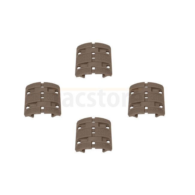 Enhance your 1913 Picatinny rail with Magpul XTM Enhanced Rail Panels in Dark Earth. These low-profile two-piece covers offer anti-slip texture, retention clips for cables, and easy removal when needed. Set includes four panels for one side of a carbine r