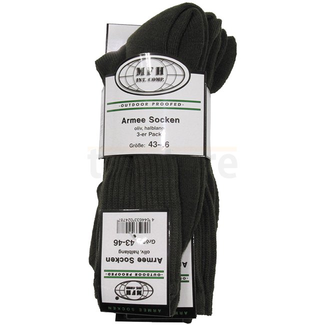 MFH Army Socks Medium-Long 3-Pack - Olive - 47/49