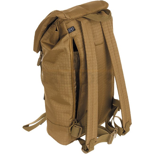 Adjustable, padded shoulder straps adjustable, detachable waist strap padded back part 1 top carrying handle lid pocket with zip and front velcro panel ca. 14 x 5 cm 1 large main compartment with double drawstring, 1 slide-in compartment with lateral zip for quick access from outside, 1 mesh pocket with zip and reinforced, padded bottom part 2 large fastening loops on the bottom Capacity: ca. 25 l Dimensions: ca. 27 x 46 x 18 cm (W x H x D) Weight: ca. 850 g