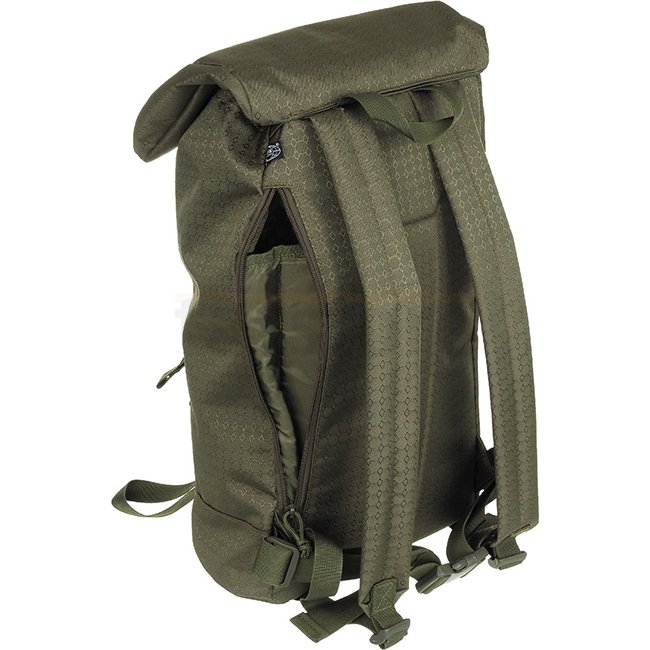 MFH Backpack Bote OctaTac - Olive - Adjustable, padded shoulder straps, detachable waist strap, padded back part. Lid pocket with zip, front velcro panel, large main compartment, slide-in compartment with lateral zip. Mesh pocket, reinforced bottom. Capac
