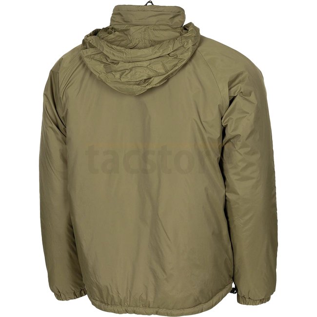 MFH British Thermal Jacket - Olive - 5XL. Stylish and practical jacket with a 2-way front zip, multiple pockets, fleece-lined collar, hidden hood, and adjustable drawstrings for a perfect fit. Made of durable nylon with polyester lining and filling for wa