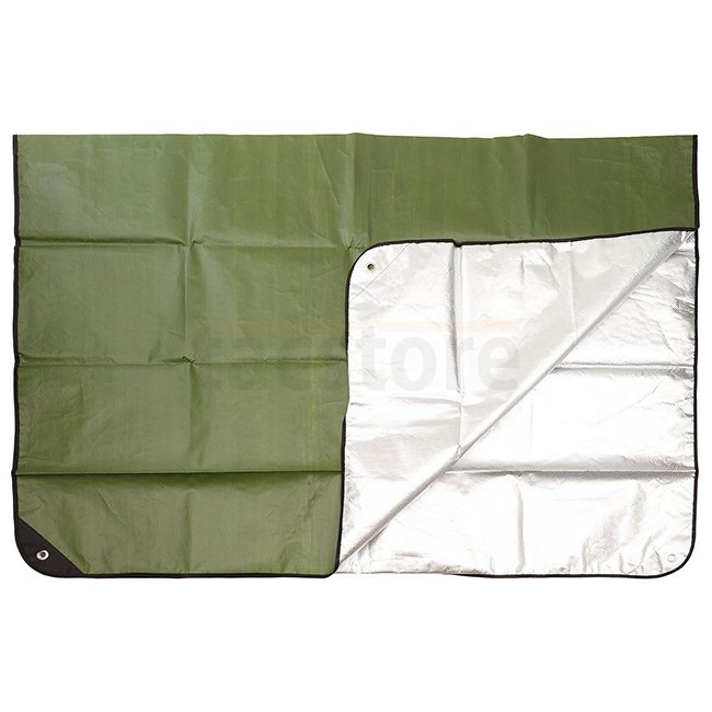 MFH Emergency Tarp - Olive: Protection against all elements, versatile and durable tarp with 4 reinforced eyelets. Ideal for camping and outdoor adventures.