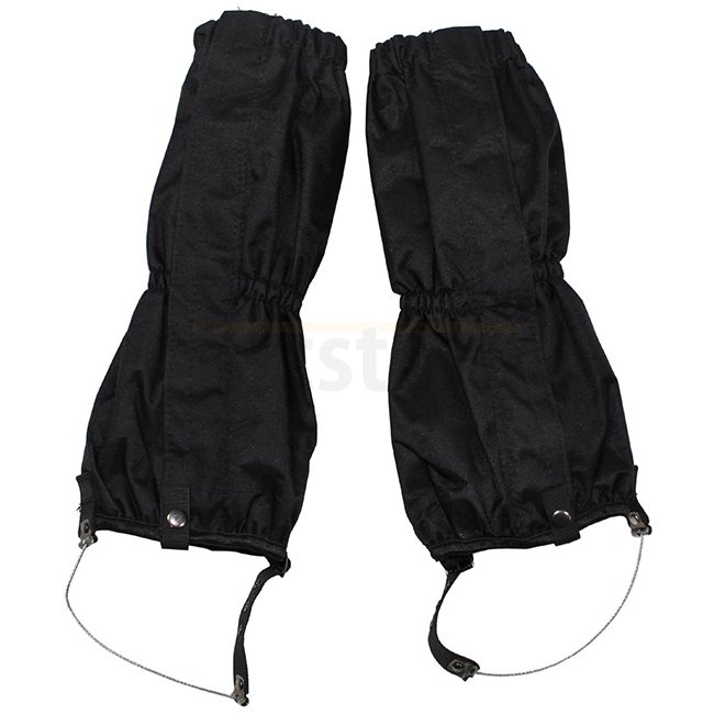 High-quality gaiters with durable zip and steel wire; adjustable for secure shoe attachment. Material: 100% Polyester outer, 100% Polyvinyl Chloride lining.