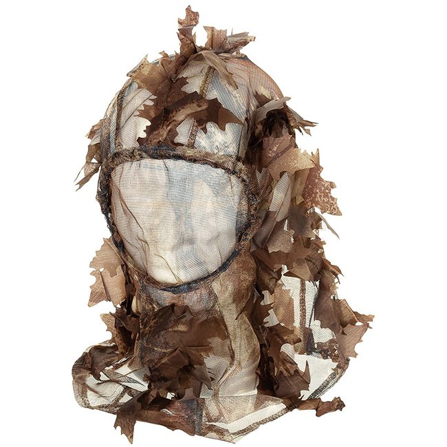 MFH Ghillie Camouflage Suit Leafs - Hunter Brown - XL/2XL. Includes pants, jacket, and balaclava. Features elastic drawstrings, press button placket, false pockets, and hood with drawstring. Made of 100% Polyester.