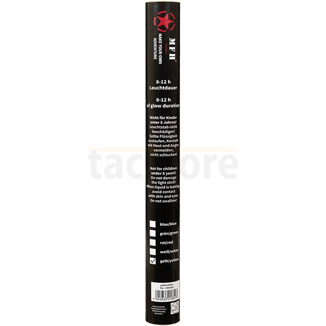 A larger version of the MFH Glow Stick measuring 35cm in Yellow color. Easily activated by bending, this versatile product has countless applications such as emergency or signal light, path marking, and even glowing under water. It comes with a suspension