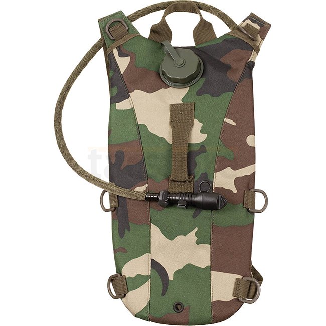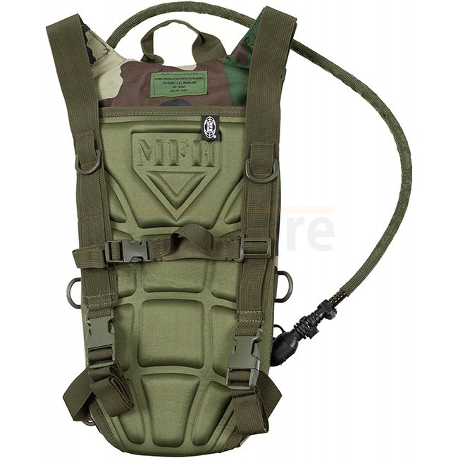 Stay hydrated and comfortable on the go with the MFH Hydration Backpack & TPU Bladder Extreme 2.5 l - Woodland. Adjustable shoulder straps, chest strap, and padded back for ventilation. Includes TPU bladder and mouthpiece. Dimensions: 22 x 45 x 2.5 cm, We