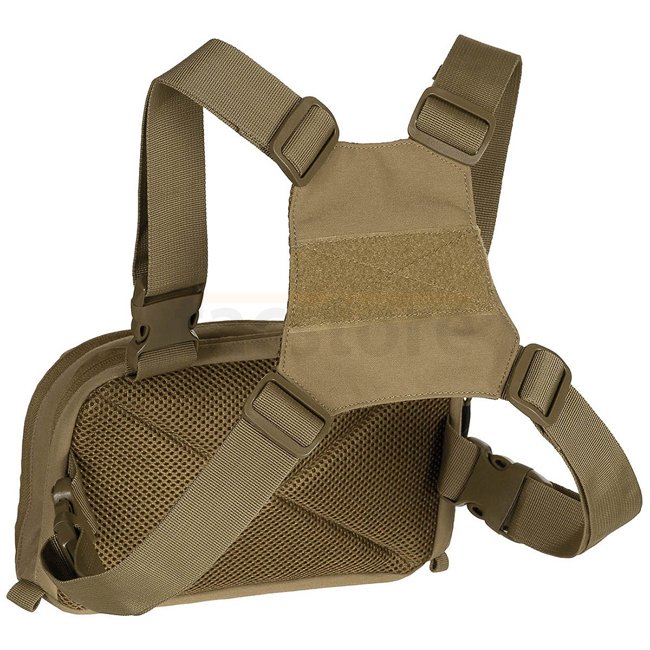 Low‑profile shoulder straps let you wear this chest pack comfortably under backpacks while keeping gear within easy reach. Breathable mesh padding on chest and back improves comfort on long days.