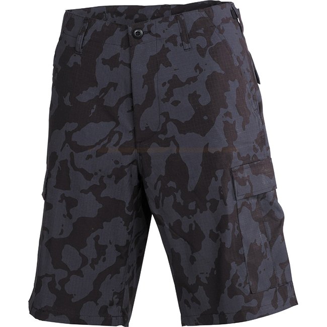 MFH US Bermuda Shorts Ripstop in Night Camo - 2XL. Button fly, multiple pockets, adjustable waistband. 100% Cotton.
