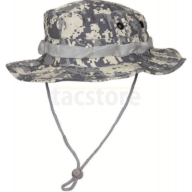 Stay comfortable and protected in the outdoors with the MFH US Boonie Hat Ripstop in AT Digital 2XL. Made of 100% cotton, this hat features a multi-quilted brim, circumferential loops, 4 ventilation eyelets with mesh, and a chin strap with a cord stopper.