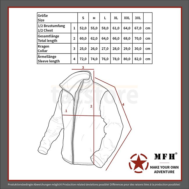 MFH US Tactical Baselayer Jacket - Olive - M: Warm, breathable, moisture-regulating, quick-drying, front zip, chin guard, chest & sleeve pockets, stand-up collar, thumb hole, velcro panel, fleece with waffle texture. Material: 100% Polyester.