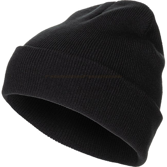Fine knit watch hat with broad fold-over brim in black color. Lightweight and comfortable, suitable for all sizes. Made of 100% acrylic material.