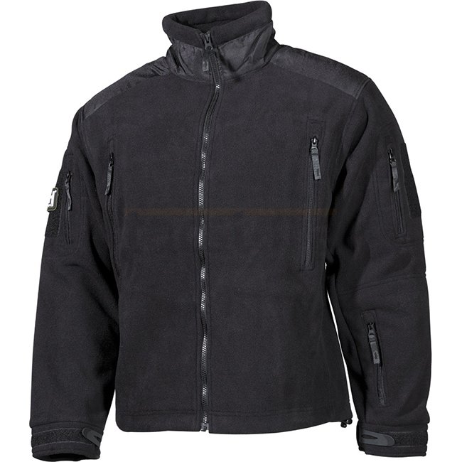 Waterproof, windproof, breathable front zip 2 chest pockets with zip right chest pocket with small inside pocket and openings for headphones 2 sleeve pockets with zip and velcro panel under arm pocket with zip Patch "MFH-Mission for High Defence" reinforced fabric on collar, shoulders and sleeves pit-zip vents sleeve ends adjustable by velcro waist and collar adjustable by drawstring